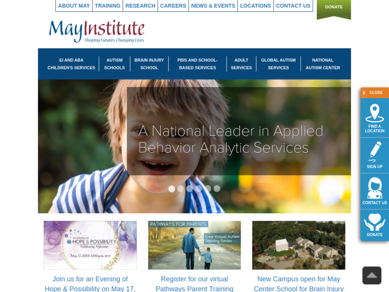 mayinstitute.org — May Institute is a nonprofit organization that provides educational, rehabilitative, and behavioral healthcare services to children and adults with autism spectrum disorders and other developmental disabilities, brain injury, mental illness, and other behavioral healthcare needs. We operate four spe…