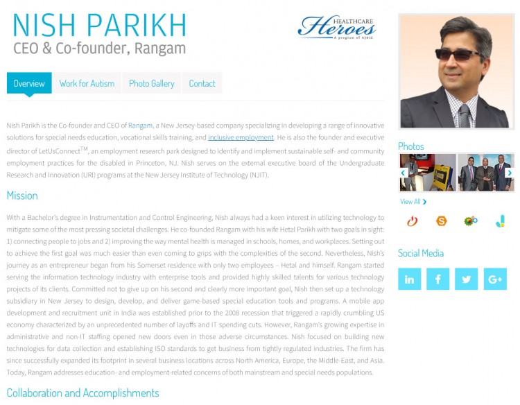 Nish Parikh is the Co-founder and CEO of Rangam, a New Jersey-based company specializing in developing a range of innovative solutions for special needs education, vocational skills training, and inclusive employment. He is also the founder and executive director of LetUsConnectTM, an employment research park designed to identify and implement sustainable self- and community employment practices for the disabled in Princeton, NJ. Nish serves on the external executive board of the Undergraduate Research and Innovation (URI) programs at the New Jersey Institute of Technology (NJIT).